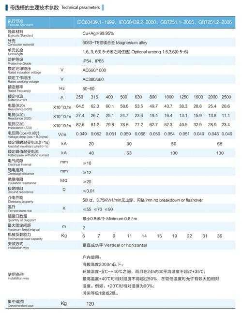 密集绝缘母线槽可为交流三相三线、三相四线、三相五线制,频率50-60Hz,电压至400V,额定工作电流为63A-6300A,主要作为工矿、企事业和高层建筑中新型供配电设备。